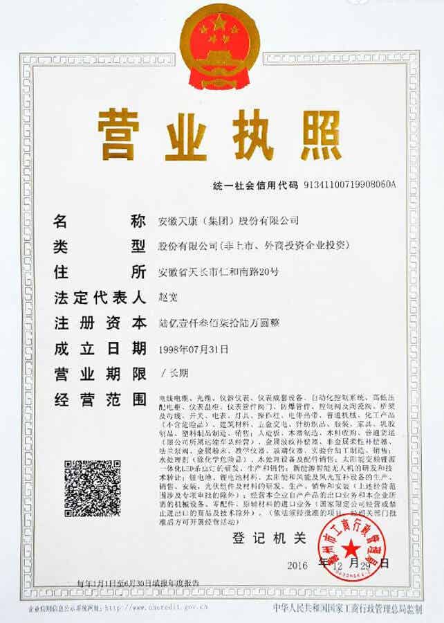 安徽天康集團(tuán)股份有限公司 營業(yè)執(zhí)照