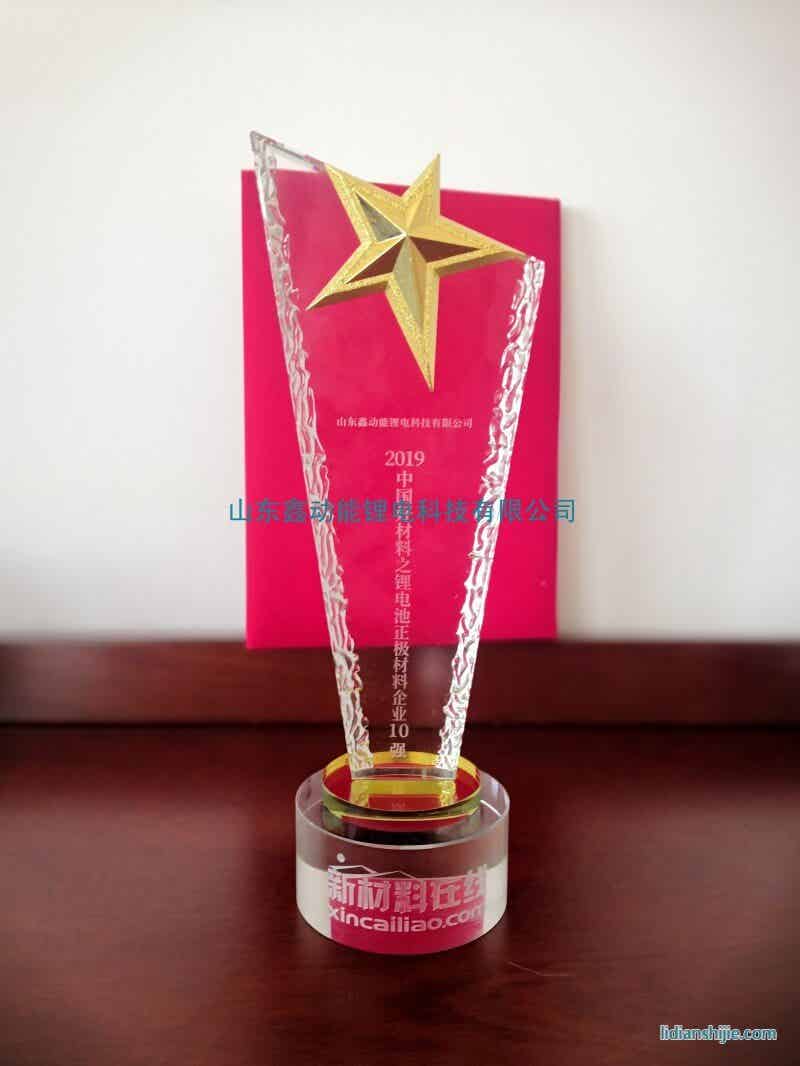 中國好材料之鋰電池正極材料企業10強獎杯
