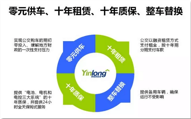銀隆推出的商業模式的金融模型中,可以承諾做到0元購車、十年質保與十年租賃,可以讓公交企業實現綠色可持續發展,真正讓公共交通市場化,不需要財政支持,不出現財政虧損,讓公交企業健康地可持續發展。