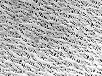 干法單向拉伸工藝是通過生產(chǎn)硬彈性纖維的方法,制備出低結(jié)晶度的高取向聚丙烯或聚乙烯薄膜,在高溫退火過程中,獲得高結(jié)晶度的薄膜。這種薄膜先在低溫下進(jìn)行拉伸形成微缺陷,然后高溫下使缺陷拉開,形成微孔。干法雙向拉伸工藝是中國科學(xué)院化學(xué)研究所在20世紀(jì)90年代初開發(fā)出的具有自主知識(shí)產(chǎn)權(quán)的工藝。干法雙向拉伸工藝,通過在聚丙烯中加入具有成核作用的β晶型改進(jìn)劑,利用聚丙烯不同相態(tài)間密度的差異,在拉伸過程中,使聚丙烯