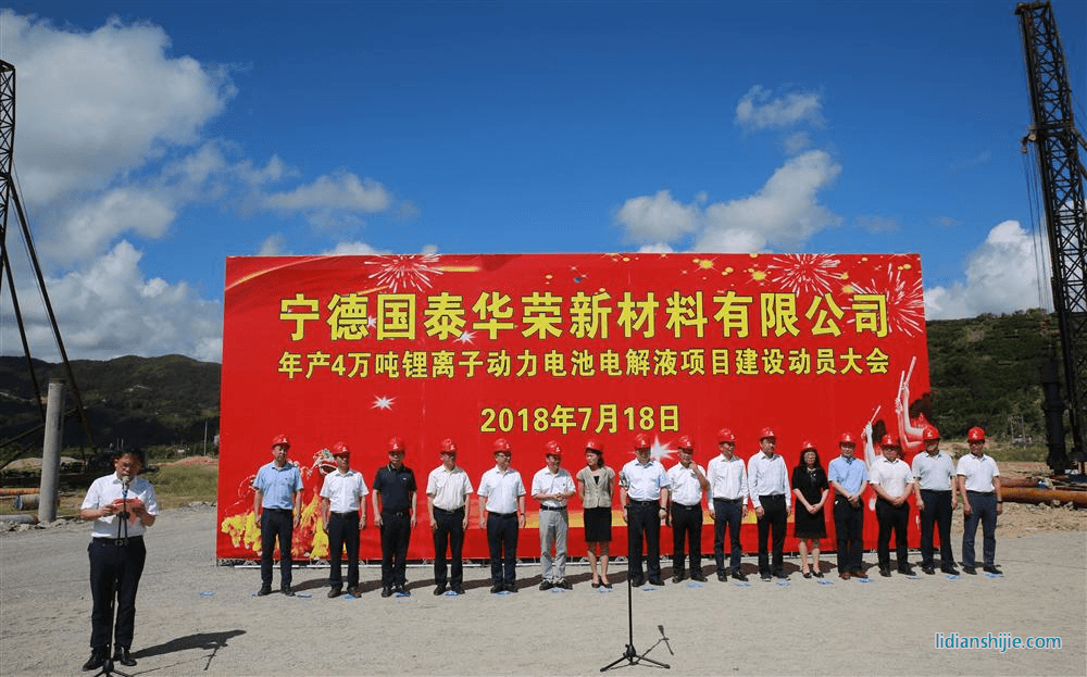 此次國(guó)泰華榮將新項(xiàng)目選址在福建寧德福鼎市,是為了進(jìn)一步貼近用戶需求,更好服務(wù)寧德時(shí)代新能源等客戶企業(yè),加快新能源產(chǎn)業(yè)的發(fā)展戰(zhàn)略布局。寧德國(guó)泰華榮新材料有限公司注冊(cè)資本1億元,占地60畝,一期預(yù)計(jì)投資1.5億元,建設(shè)年產(chǎn)4萬(wàn)噸鋰離子動(dòng)力電池電解液生產(chǎn)線,預(yù)期于2019年上半年建成投產(chǎn)。