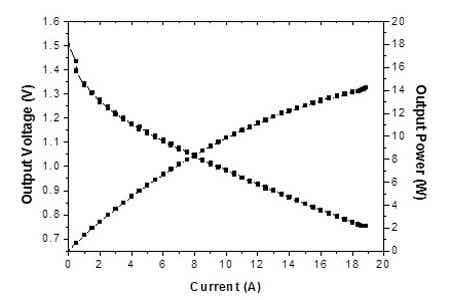 中國科學院寧波材料技術與工程研究所動力鋰電池工程實驗室在優化陰極空氣擴散電極的結構與制備工藝,以及開發高性能的錳氧化物氧還原催化劑的基礎上,成功研制出1000Wh鎂空氣電池樣機,詳見圖1所示。該電池由5個單體電池串聯而成,以AZ31鎂合金為陽極,以10%的NaCl溶液為電解液,以上述空氣擴散電極和錳氧化物催化劑為陰極。該鎂空氣電池的外觀尺寸為200×150×150 mm3,重量為2.3 kg,能量密度可達430 Wh/kg,最大輸出功率可達80W,其單體電池的I-V曲線如圖2所示。上述鎂空氣電池具有較好的商業化前景,可應用為野外供電電源、移動電源、備用電源和應急電源等。