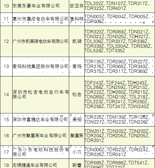 廣東省電動自行車生產企業及產品目錄(第一期)