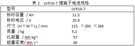 LVP10電池7只串聯(lián)連接的電池組“LVP10-7”的外觀照片及規(guī)格分別示于圖9及表2。外部電池組的監(jiān)控裝置(BMU)示出電池電壓與電池溫度,所以每只電池應(yīng)安裝電壓檢測導(dǎo)線與熱敏電阻。另外,為了防止外部設(shè)備發(fā)生短路時通過短路電流避免外部設(shè)備受損,在電池阻內(nèi)部裝有保險絲。