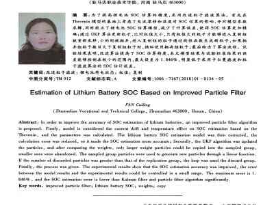 由于動力鋰電池參數(shù)具有受外界干擾影響大、電池模型非線性的特點,現(xiàn)有的荷電狀態(tài)(SOC)估算方法并不能完全滿足精度和實時性的需要.在綜合考慮模型的精確性和實際工程計算復雜程度后,提出使用經(jīng)驗公式模型,在模型的基礎上采用無跡卡爾曼濾波(UKF)算法對電池SOC進行估算.通過對比動力鋰電池放電實驗得到的數(shù)據(jù),檢驗算法估算效果.實驗結果表明:UKF算法能夠準確跟蹤動力鋰電池放電變化情況,對動力鋰電池SOC的估算誤差在2%左右,相比于傳統(tǒng)算法在精度上有較大的提高.