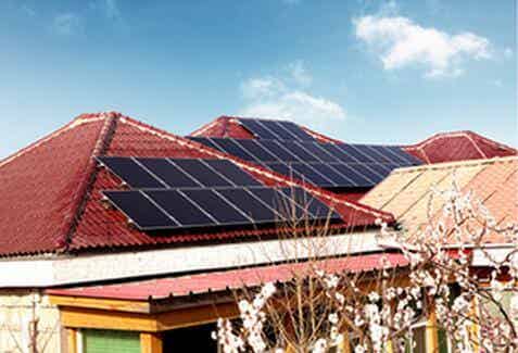 在紅色瓦片的映襯下,姜昆家屋頂上的藍(lán)色薄膜太陽能電池板格外醒目。