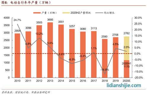 電動自行車市場相對成熟,年銷量穩(wěn)定在3000萬輛左右,在政策和市場的雙重推動下,預(yù)計(jì)2020年鋰電池市占率將突破20%,未來三年鋰電池電動自行車產(chǎn)量的復(fù)合增長率將超過30%。