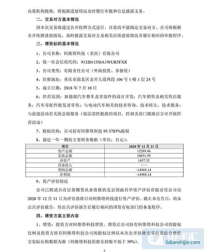 核心提示:電車匯消息:8月21日,長安汽車公告,旗下阿維塔科技(重慶)有限公司通過公開掛牌增資擴股引入2-5家投資者。此次掛牌標(biāo)志著阿