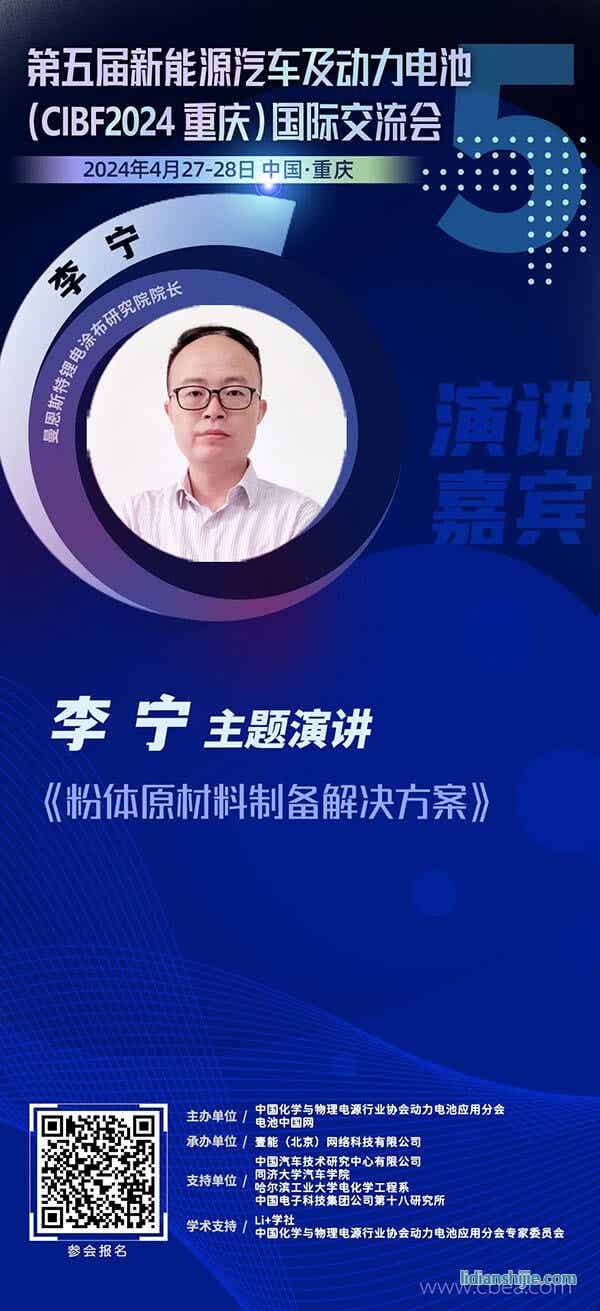 2024年4月27-28日,由中國化學(xué)與物理電源行業(yè)協(xié)會指導(dǎo),動力電池應(yīng)用分會與電池中國網(wǎng)共同主辦的“第五屆新能源汽車及動力電池(CIBF2024重慶)國際交流會”將在重慶召開。