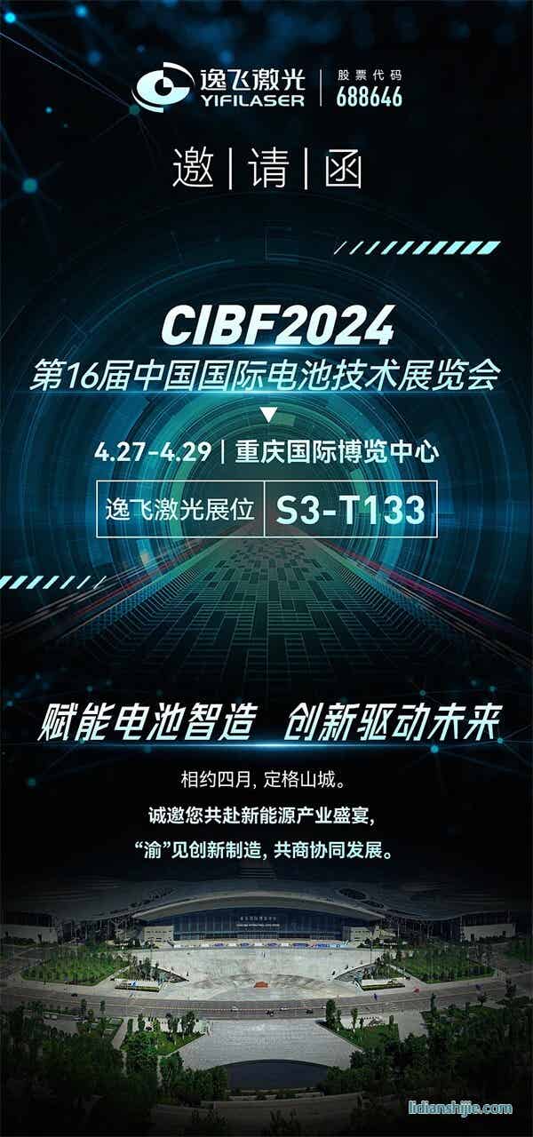 4月27日-29日,逸飛激光將參加第十六屆重慶國際電池技術(shù)交流會/展覽會(CIBF2024),展示其系列產(chǎn)品和持續(xù)創(chuàng)新能力。