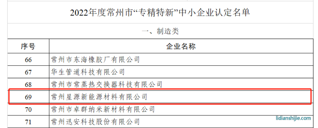 5月31日,星源材質全資子公司常州星源憑借集團在隔膜領域的龍頭地位和技術基礎,以及自身專業化、精細化、特色化、新穎化的優勢上榜常州市“專精特新”中小企業認定名單!