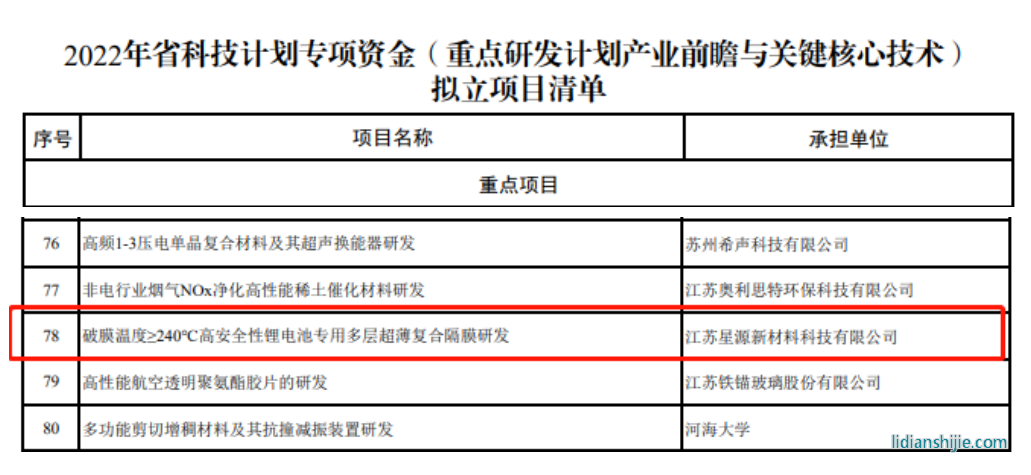 核心提示:5月23日,江蘇省科技廳公示了2022年省科技計劃專項資金(重點研發計劃產業前瞻與關鍵核心技術)擬立項目,星源材質全資子公司江