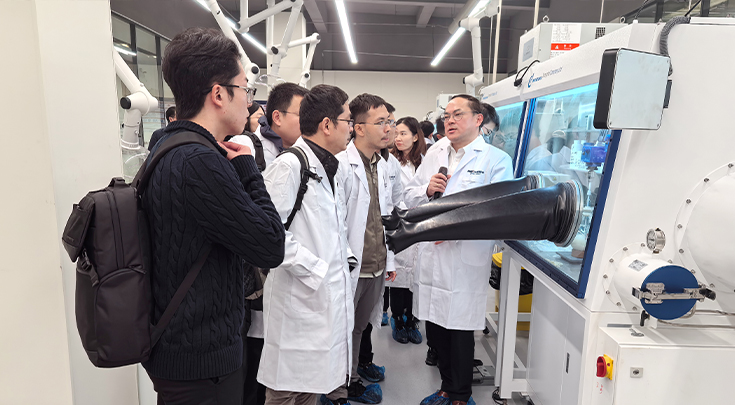 會(huì)議結(jié)束后,投資者一行首先前往華盛鋰電,實(shí)地考察硫化鋰中試生產(chǎn)線,總部研究院院長(zhǎng)張先林就公司目前研發(fā)團(tuán)隊(duì)和研發(fā)設(shè)備情況進(jìn)行簡(jiǎn)要介紹。