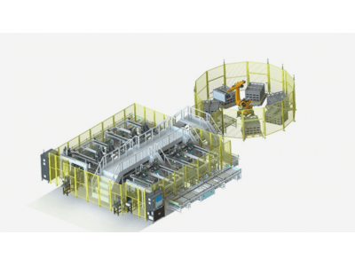 ● 下料堆垛:采用ABB或庫卡六軸機器人,對不同檔位的電池托盤進行堆垛到棧板上,后續由人工叉車或者AGV小車出料;