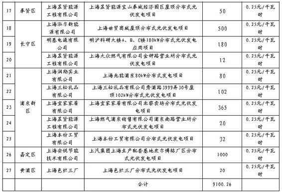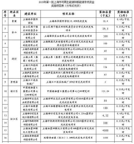 上海公布2015年第一批分布式光伏補貼項目
