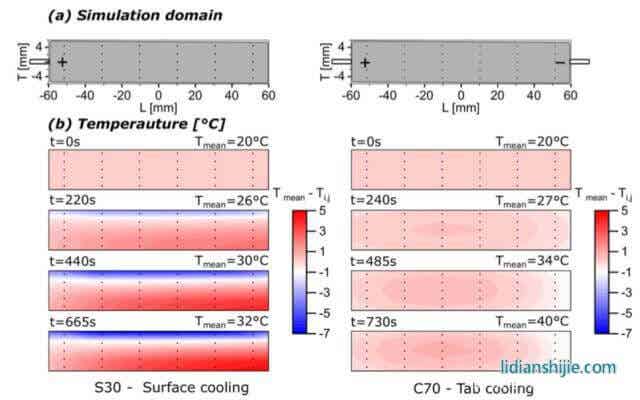 近日,英國(guó)帝國(guó)理工大學(xué)的Yan Zhao(第一作者)和Teng Zhang(通訊作者)、Gregory J. Offer(通訊作者)等通過(guò)建立二維模型的方式對(duì)鋰離子電池“表面散熱”和“極耳散熱”兩種散熱方式的效果和對(duì)于鋰離子電池壽命的影響進(jìn)行了研究,并對(duì)于如何優(yōu)化“極耳散熱”提出了建議。