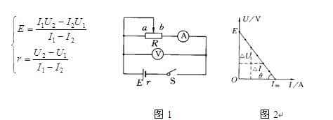 (至少測出6組),并且變化范圍晝大些,然后用描點法在U-I圖象中描點作圖,由圖象縱截距找出E,由圖象斜率 找出內(nèi)電阻,如實驗圖2所示.