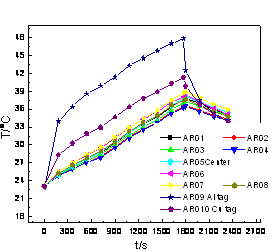 從圖中可以看出,電池在放電過程中,正極極耳處溫升最快,負極極耳處次之,這說明電池在進行放電時極耳處可能是整個電池的熱源,尤其是在大電流放電情況下,極耳處產(chǎn)生的大量熱將傳遞至電池內(nèi)部,誘使內(nèi)部發(fā)生連環(huán)的放熱反應(yīng),從而引起電池的熱失效;而在充電過程,正負極極耳處的溫度相對其它區(qū)域要低,由于電池充電過程本身是個吸熱過程,因此在操作合理的情況下不會出現(xiàn)因大量產(chǎn)熱而導(dǎo)致的安全事故。