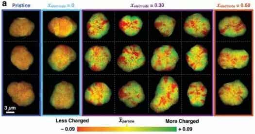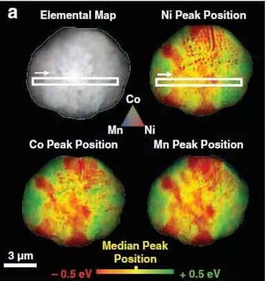 William E. Gent等人對此做出了假設,顆粒內部的應力和Li分布不均勻的產生,主要是由于二次顆粒的形貌造成,而和動力學特征無關,因此一些多孔結構和開放結構的材料展現出了更好的循環性能,這種結構能有效的吸收體積變化,降低充電過程中的應力和Li分布不均勻的現象。該研究給了我們很大的啟示,一般我們期望通過限制截至電壓來提高材料的循環壽命,但是通過研究發現,即使在較低的截至電壓下,材料內部仍然會發生局部的過充現象,從而造成材料的失效加速。因此提高 NCM材料的壽命的方法更多的是依賴與NCM材料本身微觀結構的改善,在降低局部的不均勻的同時,提高截至電壓,從而達到在發揮材料較高的容量的基礎上,改善材料的循環壽命。